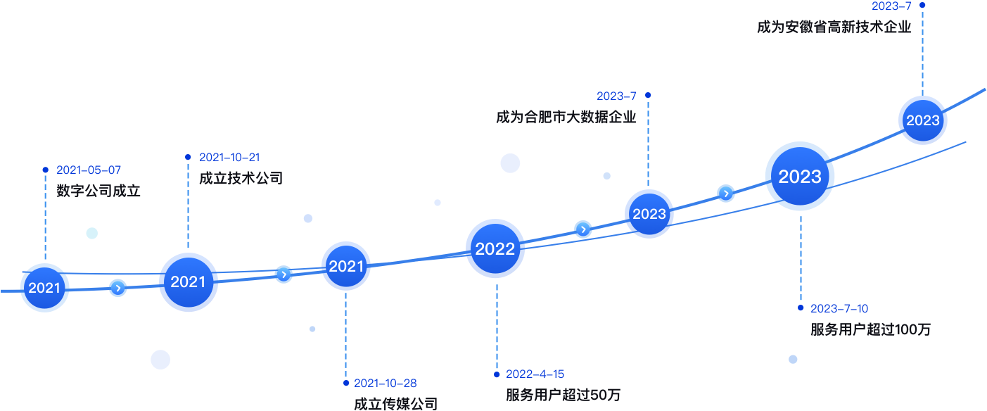 公司于2021年5月份成立,目前主要負責智慧肥西政府端及居民端建設(shè)、干事檔案開發(fā)、廣告位管理等項目的代建及運營工作,并于2021年11月分別組建了軟件類和傳媒類全資子公司。